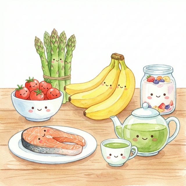 ポイント:バナナにはトリプトファン・ビタミンB6・糖質の3つが揃っているので、セロトニンの材料を1本で効率よく摂れます。